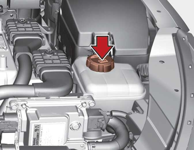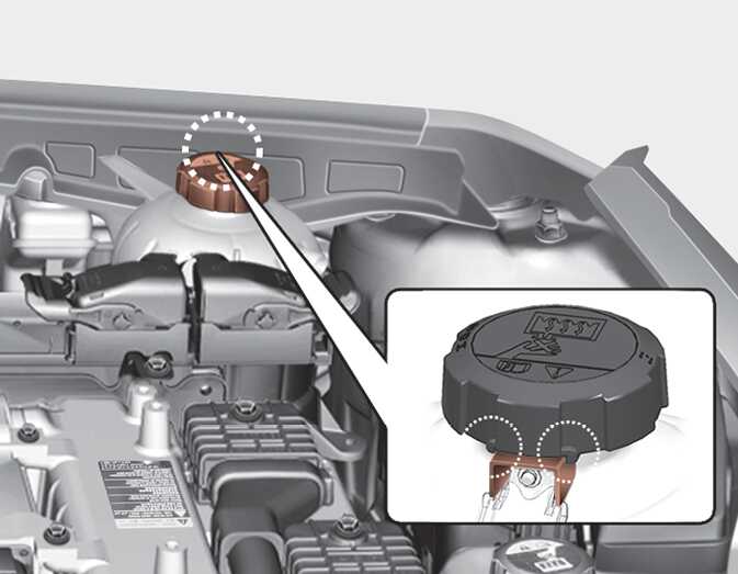 냉각수 보충 후에는 냉각수 보조탱크 캡을 완전히 잠그십시오. 그렇지 않으면 주행 중 냉각수가 넘쳐 엔진이 과열될 수 있습니다.