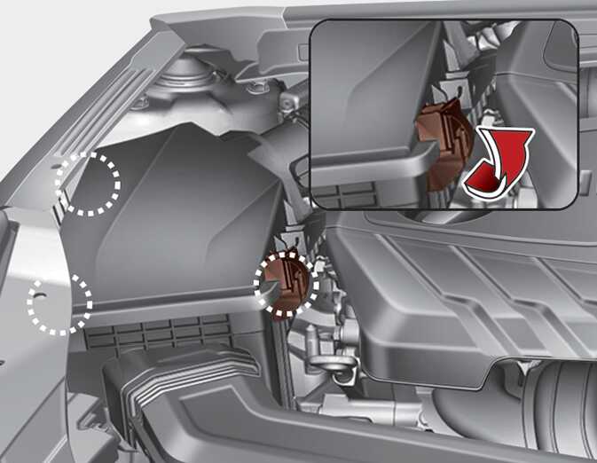 에어클리너 필터 분리시 에어플로우 센서에 충격을 가하거나 공기 흡입구에 먼지나 오염물질이 들어가지 않도록 주의하십시오.