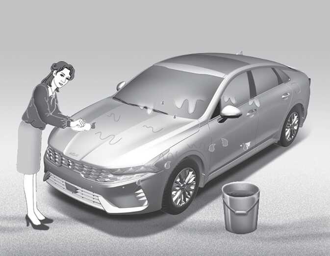 곤충, 타르, 수액, 새의 오물, 산업 오염물이나 이와 유사한 퇴적물 등은 즉시 제거하지 않으면 차의 표면을 손상시킬 수 있습니다. 보통 물로는 빨리 씻어내도 완전히 닦이지 않으므로 도장 표면에 안전하고 부드러운 세제를 사용하십시오. 세척 후에는 미지근 하거나 찬물로 깨끗이 헹구십시오. 세제가루가 표면에 말라붙지 않도록 하십시오.