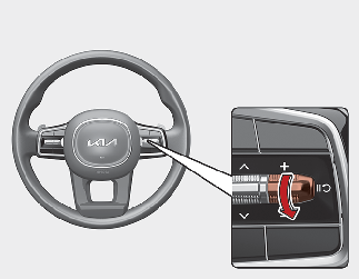 「+」 스위치를 위로 올리거나 「-」 스위치를 아래로 내려 원하는 속도를 설정하십시오. 「+」 스위치를 위로 길게 올리거나 「-」 스위치를 아래로 길게 내리고 있으면 10 km/h씩 속도가 증가하거나 감소합니다.