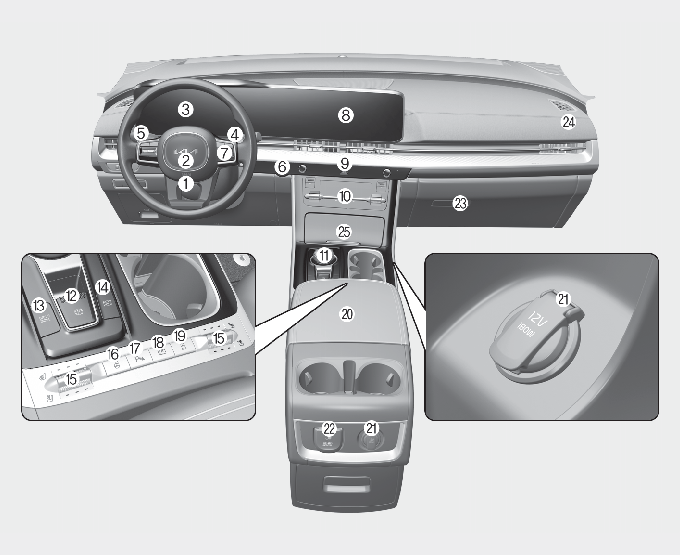 * 실제 차량과 다를 수 있습니다. (스위치의 형상 및 배열은 사양 적용에 따라 달라질 수 있습니다)