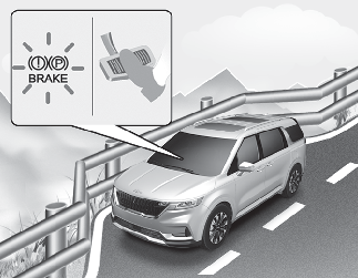 브레이크 경고등이 켜지면 페달이 딱딱해져 제동이 힘들 수 있습니다. 이 경우에는 평상시보다 강하게 밟아 정지해야 합니다.