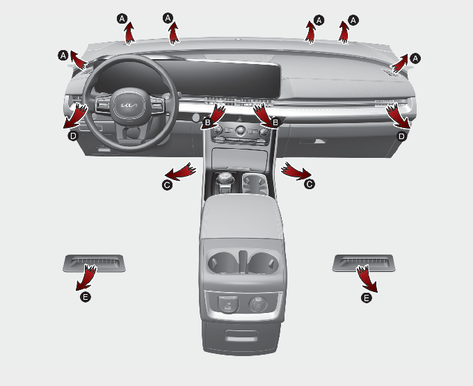 * ⓔ 송풍구는 주로 난방 시 사용하며, 겨울철에는 다소 미지근한 바람이 송풍될 수 있습니다.