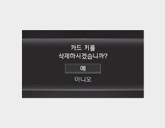 * 인포테인먼트 시스템 사양 적용 시: 인포테인먼트 전체 메뉴 화면에서 '설정→차량→디지털 키→카드 키'하위 메뉴로 이동하여 '삭제'를 누르십시오.