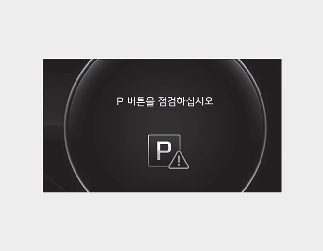 「P」(주차) 전환 기능에 이상이 있을 때 표시창에 경고 메시지가 뜹니다.