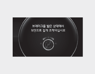 「N」(중립)에서 「D」(주행)로 변속 시에는 브레이크 페달을 밟고 변속 다이얼을 「D」(주행)로 변속하십시오.