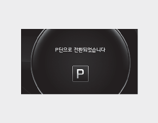 「P」(주차)로 전환되었을 때 표시창에 경고 메시지가 뜹니다.