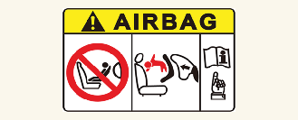 에어백의 위험을 상기하도록 에어백 경고 라벨이 부착되어 있습니다.
