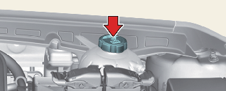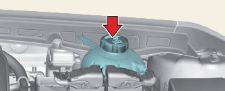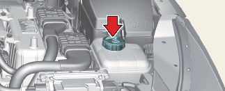냉각수 보조 탱크 캡을 열거나 냉각수를 주입할 때 냉각수가 흘러 내릴 경우 엔진 하부 등 다른 부품에 손상을 줄 수 있으므로 부직포, 두꺼운 헝겊 등으로 캡 주위를 감싼 뒤 천천히 캡을 열고 냉각수를 보충하십시오.
