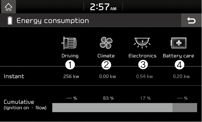 You can check the current energy consumption for each system of the vehicle.
