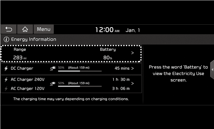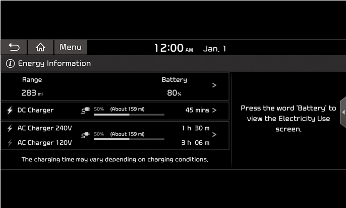 You can check the reachable range, battery power remaining, and expected charging time for each charger type.