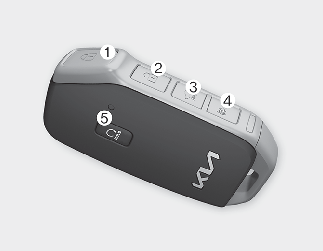 Press the remote start button (5) once to turn off the vehicle.Air conditioner/heater system maintains the status before turning off the vehicle. If no further action for operating/driving the vehicle is taken, the vehicle will be turned off 10 minutes after starting the vehicle remotely.