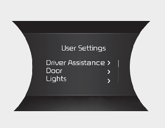 For your safety, change the User Settings after parking the vehicle, applying the parking brake and shifting to P (Park).