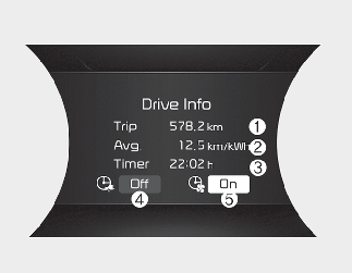 This information is displayed for a few seconds when you turn off the vehicle, and then goes off automatically. The information is calculated for each time the vehicle is turned on.