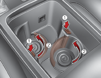 To use the cup holder space as a storage compartment, turn the cup holder (2) the direction of the arrow.