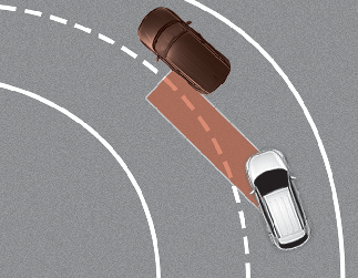 Blind-Spot Collision Warning may not operate properly when driving on a curved road. In certain instances, the function may recognize a vehicle in the same lane.