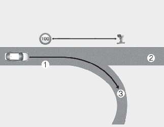 When the vehicle's driving route is recognized as the main road by maintaining the main road instead of the navigation set route, Highway Auto Curve Slowdown function will operate. Depending on the distance to the curve and the current vehicle speed, vehicle deceleration may not be sufficient or may decelerate rapidly.