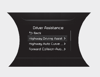 If 'Highway Driving Assist' is selected, it helps maintain distance from the vehicle ahead, maintain the set speed, and keep the vehicle between lanes.