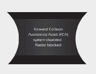 In this case, a warning message ("Forward Collision Avoidance Assist (FCA) system disabled. Radar blocked") will appear to notify the driver. Remove the foreign substances to allow Forward Collision-Avoidance Assist to function normally.