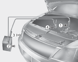 Do not connect the jumper cable from the negative terminal of the booster battery to the negative terminal of the discharged battery, directly. This can cause the discharged battery to overheat, crack, and degrade.