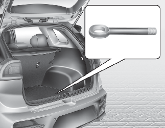 Install the towing hook by turning it clockwise into the hole until it is fully secured.