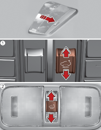 Pulse el interruptor del techo solar hacia delante o hacia atrás hasta la primera posición de retención, el cristal del techo solar se mueve hasta que se suelta el interruptor.