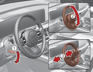 Ajuste el volante al ángulo (2) y la altura (3) deseados.