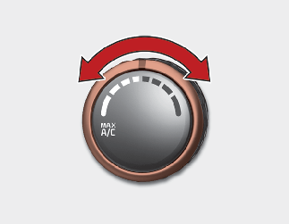 Para cambiar la temperatura del aire en el compartimento de los pasajeros, gire el mando a la derecha para calentar el aire y hacia la izquierda para enfriarlo.