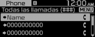 Solo se accede al historial de llamadas después de descargar el historial de llamadas cuando se conecta el teléfono móvil al sistema.