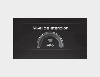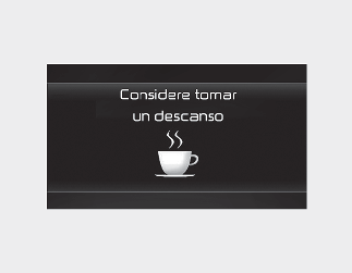 El mensaje "Considere tomar un descanso" aparecerá en el tablero y un sonido de advertencia indicará al conductor que debe descansar si el nivel de atención del conductor es inferior a 1.