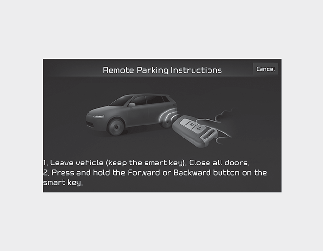 Cuando el conductor entre en el vehículo con la llave inteligente, aparecerá un mensaje informándole de que la función de conducción a distancia ha finalizado en la pantalla del sistema de infoentretenimiento y el vehículo permanecerá encendido.