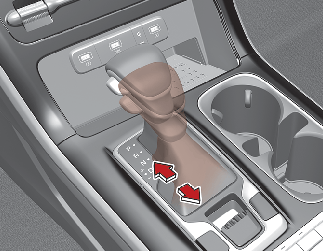 Tanto si el vehículo está parado o en movimiento, el modo manual se selecciona empujando la palanca de cambios de la posición D (conducción) a la corredera manual. Para volver al funcionamiento en D (conducción), empuje de nuevo la palanca de cambios a la corredera principal.