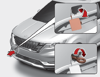 Extraiga la cubierta del orificio presionando la parte superior de la cubierta en el parachoques delantero.