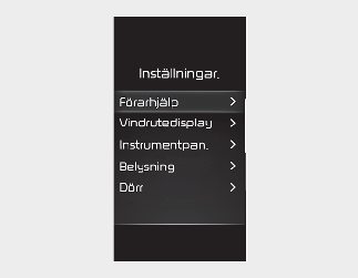 Tryck på OK-knappen på ratten i minst 1 sekund när förarhjälp-läget är aktiverat för att ändra förarhjälp-inställningar (förarassistans).