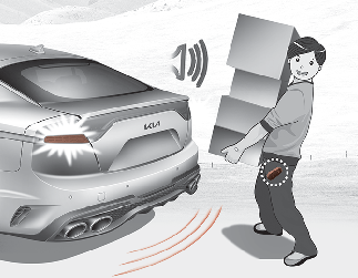 Om du befinner dig inom avkänningsområdet (50 -100 cm bakom bilen) och har smartnyckeln med dig blinkar varningslamporna och ett ljud hörs i ungefär 3 sekunder för att upplysa om att smartnyckeln har känts av och att bakluckan öppnas.