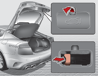 I händelse av nödfall ska du veta var nödhandtaget sitter och hur du öppnar bakluckan om du oavsiktligt stängs in i bagageutrymmet.