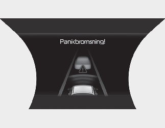 Varningsmeddelandet ”Emergency Braking” (panikbromsning) visas på instrumentpanelen och en varningssignal ljuder för att varna föraren om att en panikbromsning sker.