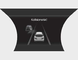 Varningsmeddelandet ”Collision Warning” (kollisionsvarning) visas på instrumentpanelen och en varningssignal ljuder för att varna föraren för en kollisionsrisk.