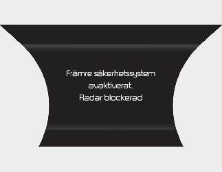 visas varningsmeddelandet ”Systemet för säkerhet framåt inaktiverat. Radar skymd”, och varningslamporna