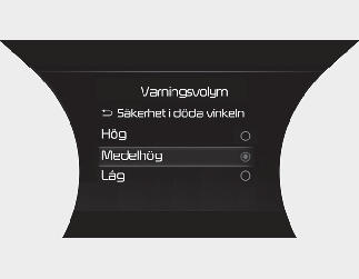 Om du ändrar varningsvolymen kan varningsvolymen ändras även för andra förarassistanssystem.