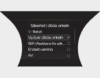 Inställning för Kollisionsvarning i döda-vinkeln