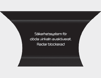 Om detta inträffar inaktiveras "Blind-Spot Safety-systemet". Radar blocked’-varningsmeddelande kommer att visas på instrumentpanelen.