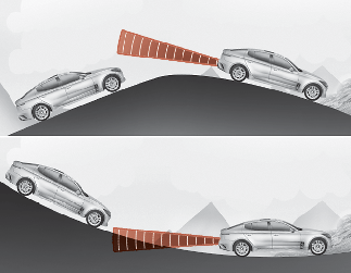 Blind-Spot Collision Warning kanske inte fungerar ordentligt när du kör på i backe. Funktionen upptäcker eventuellt inte fordonet i körfältet intill eller tolkar av misstag marken eller en konstruktion som ett fordon.