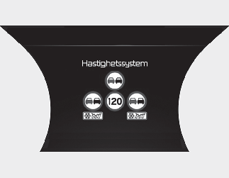 När fordonet körs snabbare än hastighetsgränsen indikeras visas en varningsskylt med hastigheten i rött i instrumentklustret.
