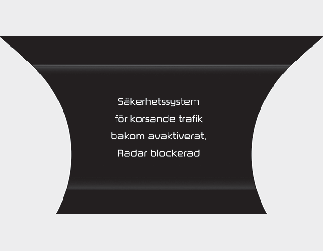Om detta inträffar kommer varningsmeddelandet “Rear Cross-Traffic Safety system disabled. Radar blocked” (Systemet för säkerhet i döda vinkeln är inaktiverat. Radar skymd) visas i instrumentpanelen.