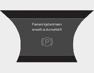 Om du försöker att trycka ner gaspedalen och köra iväg med EPB aktiverad, utan att den lossas automatiskt, hörs en varningssignal och ett meddelande visas.