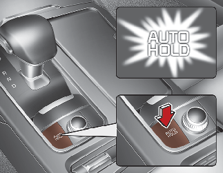 Med förardörr, motorhuv och baklucka stängda ska förarens säkerhetsbälte tas på eller bromspedalen tryckas ned. Tryck sedan på Auto Hold-knappen. Den vita AUTO HOLD-indikatorn tänds och systemet är i standby-läget.