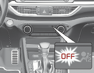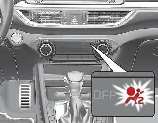 You will find the PASSENGER AIR BAG “OFF” indicator on the center facia panel. This system detects the conditions 1 ~ 4 in the following table and activates or deactivates the front passenger air bag based on these conditions.
