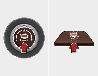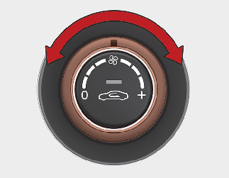 To change the air temperature in the passenger compartment, turn the knob to the right for warm and hot air or to the left for cooler air.