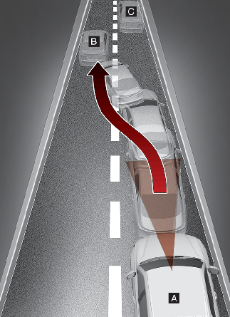 When a vehicle changes lanes in front of you, Forward Collision-Avoidance Assist may not immediately detect the vehicle, especially if the vehicle changes lanes abruptly. In this case, you must maintain a safe braking distance, and if necessary, depress the brake pedal to reduce your driving speed in order to maintain a safe distance.